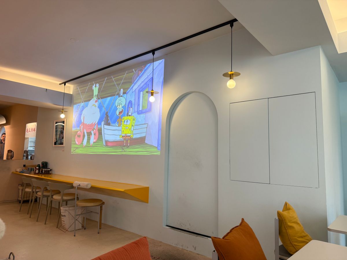 很可愛的是牆壁有播放海綿寶寶,這可是身為90年代孩子的童年,好懷念~