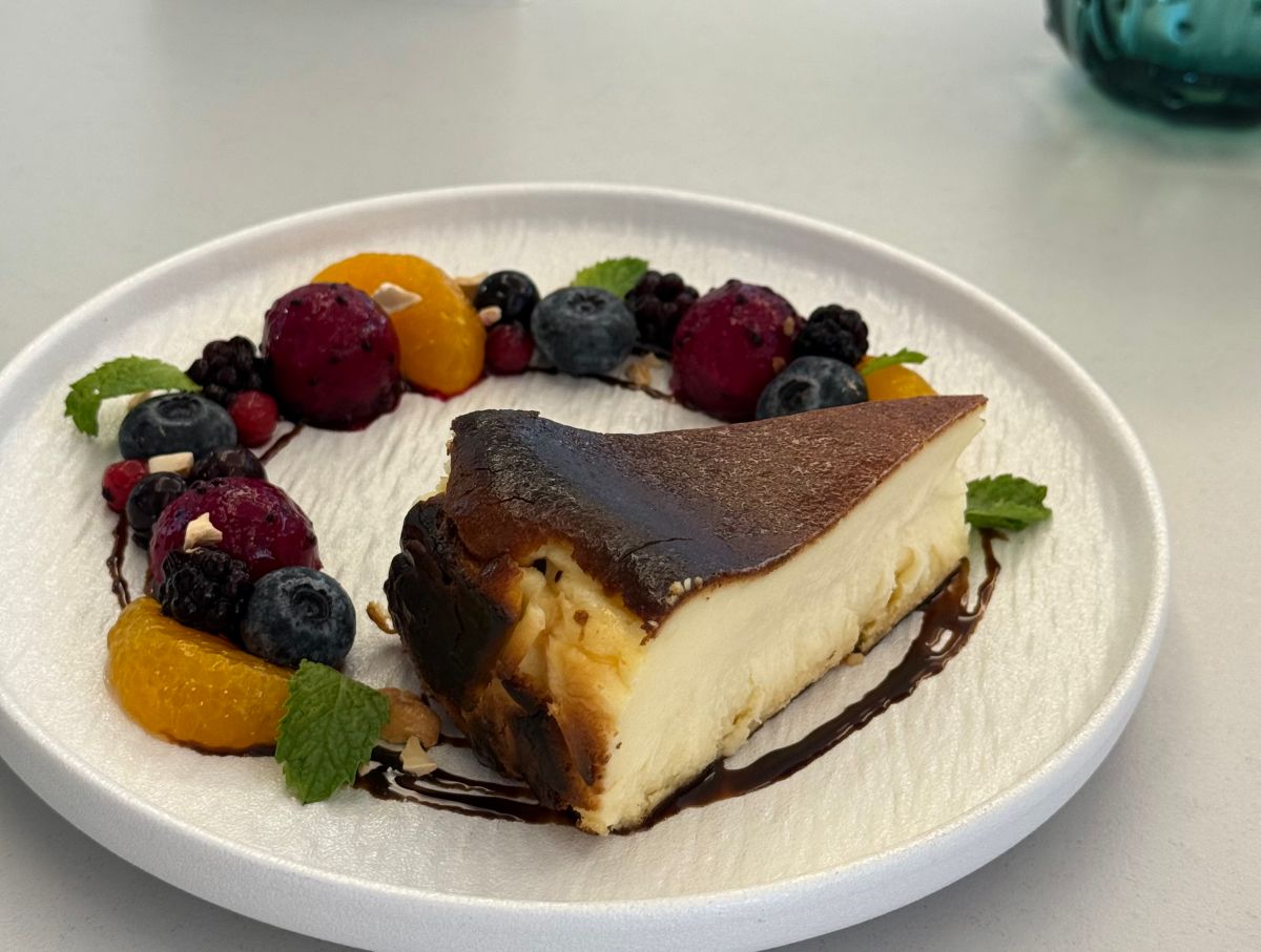 咖央家的甜點蠻厲害的,尤其是巴斯克。首先擺盤就給加分,吃過很多咖啡廳的巴斯克,都是只有蛋糕本人。咖央的還有水果擺盤,很漂亮又好吃。巴斯克本人中間是像是慕斯般的滑順,不是扎實的口感。有入口即化的感覺,很好吃。