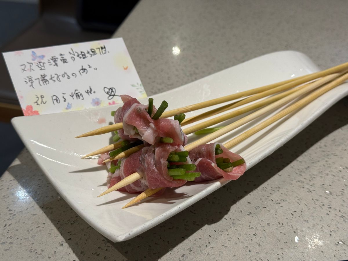 我們自己有買蛋糕,但沒想到海底撈還有另外準備小甜點,生日擺盤很用心