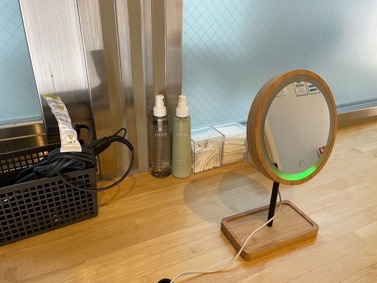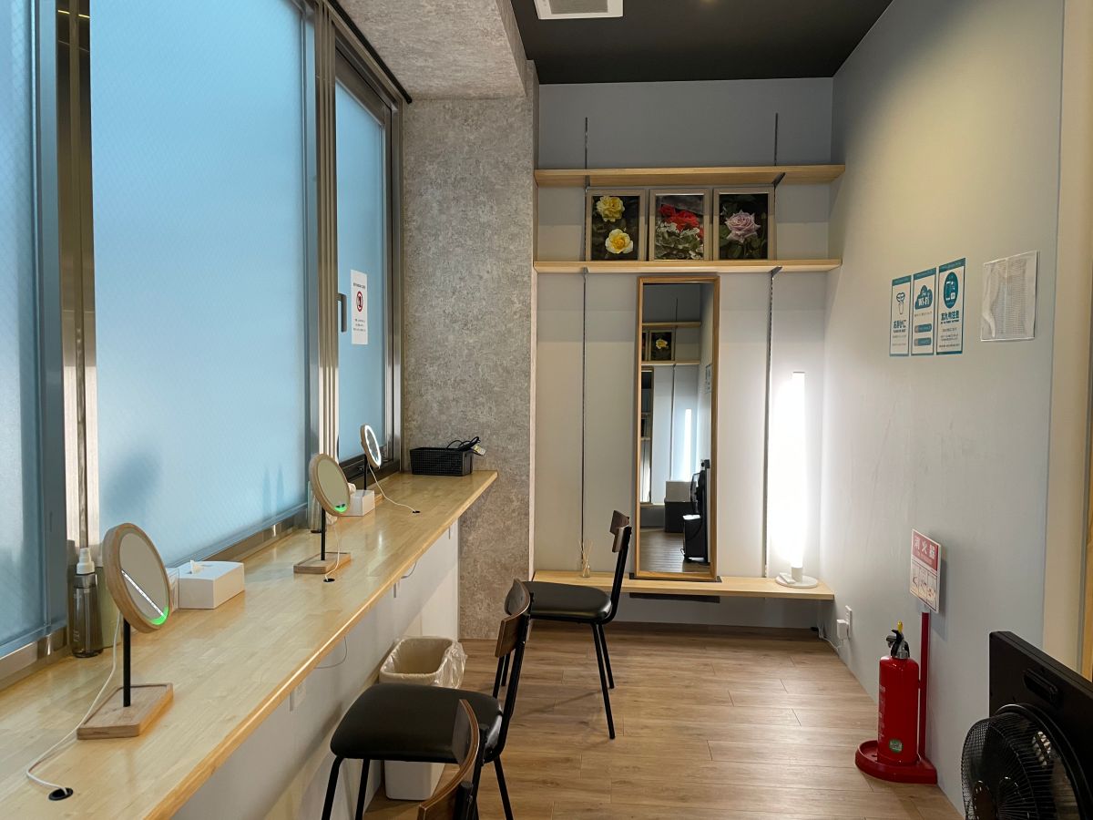 走廊的盡頭是化妝區,有全身鏡和多個化妝鏡,早上窗外的採光進來,完全可以好好的化妝。桌上還有提供直髮夾,非常貼心。