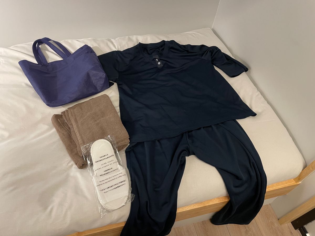 辦理手續會獲得一包盥洗用品,包括睡衣、毛巾、浴巾和一次性拖鞋。每天若需要更換,需要自行交給櫃台。打掃是3天一次。最後退房時,須將整包備品交由櫃檯。