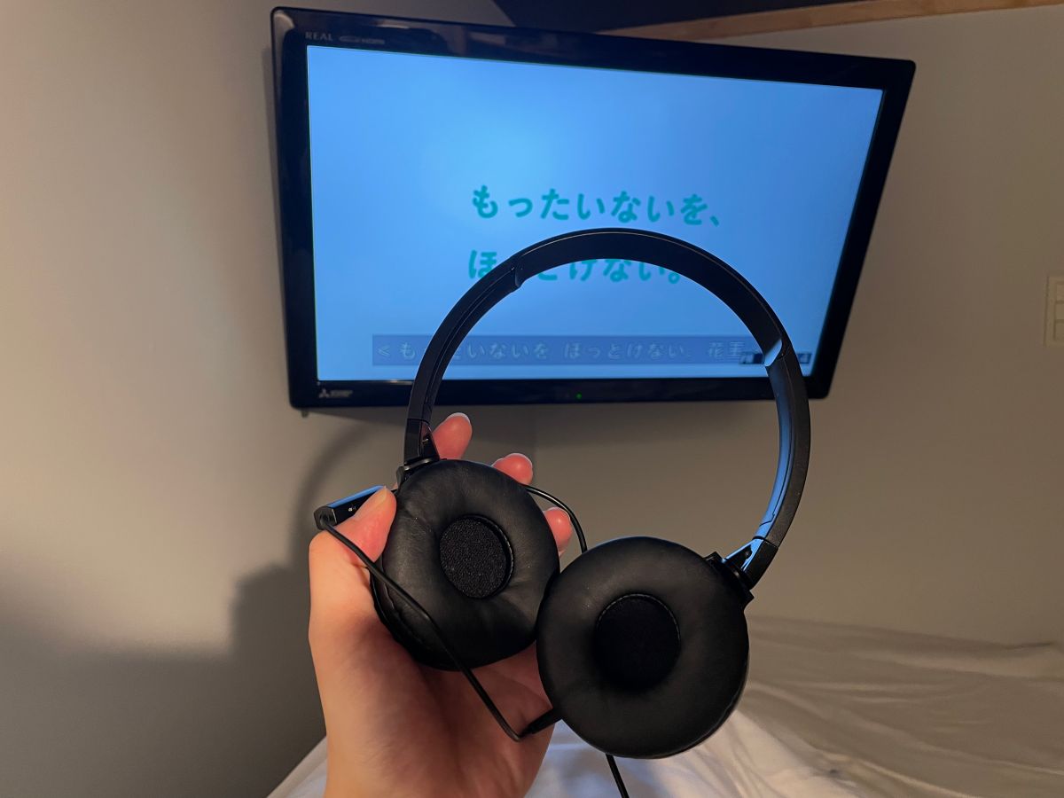 看電視需要戴耳機才可以聽到聲音。調整可以角度,完全可以躺平看電視,超舒適!!