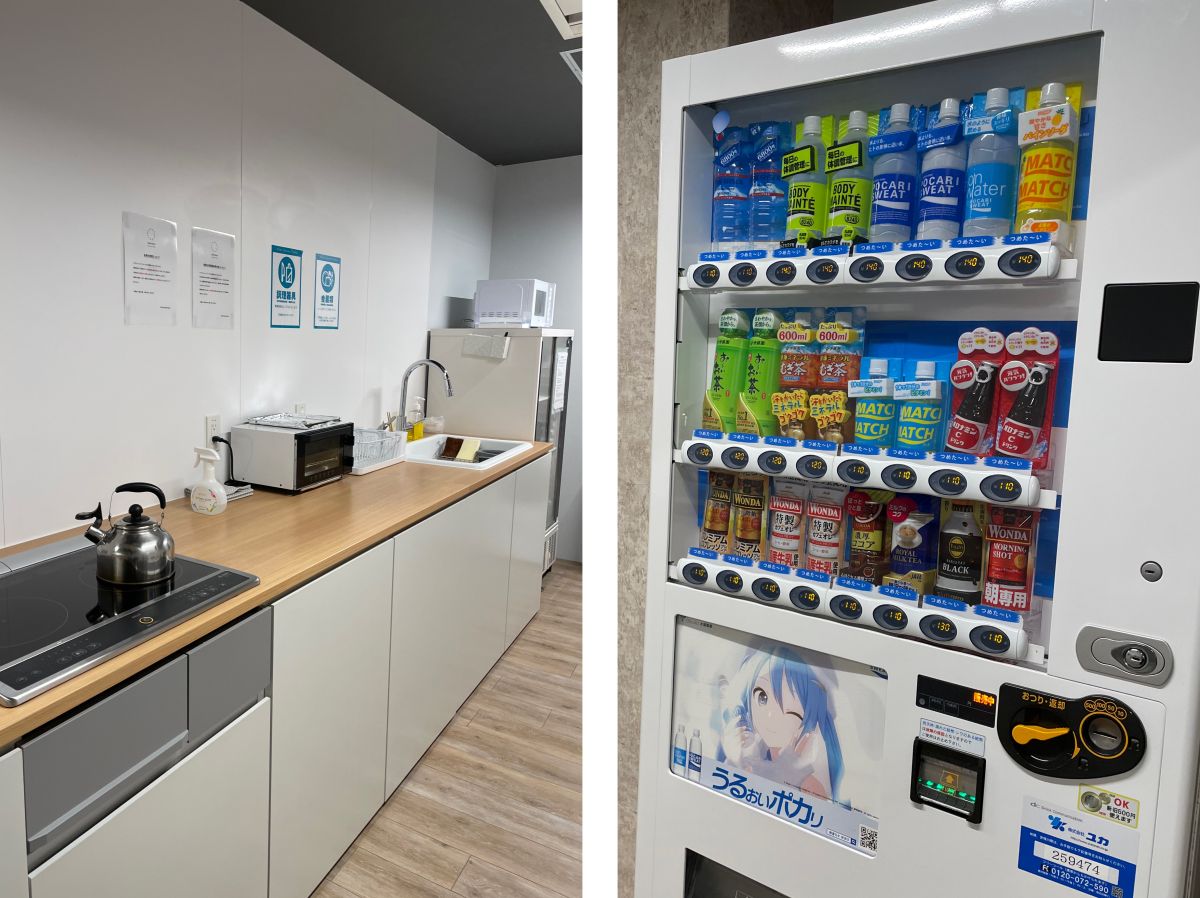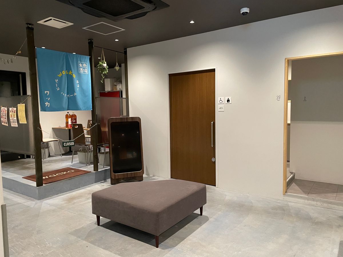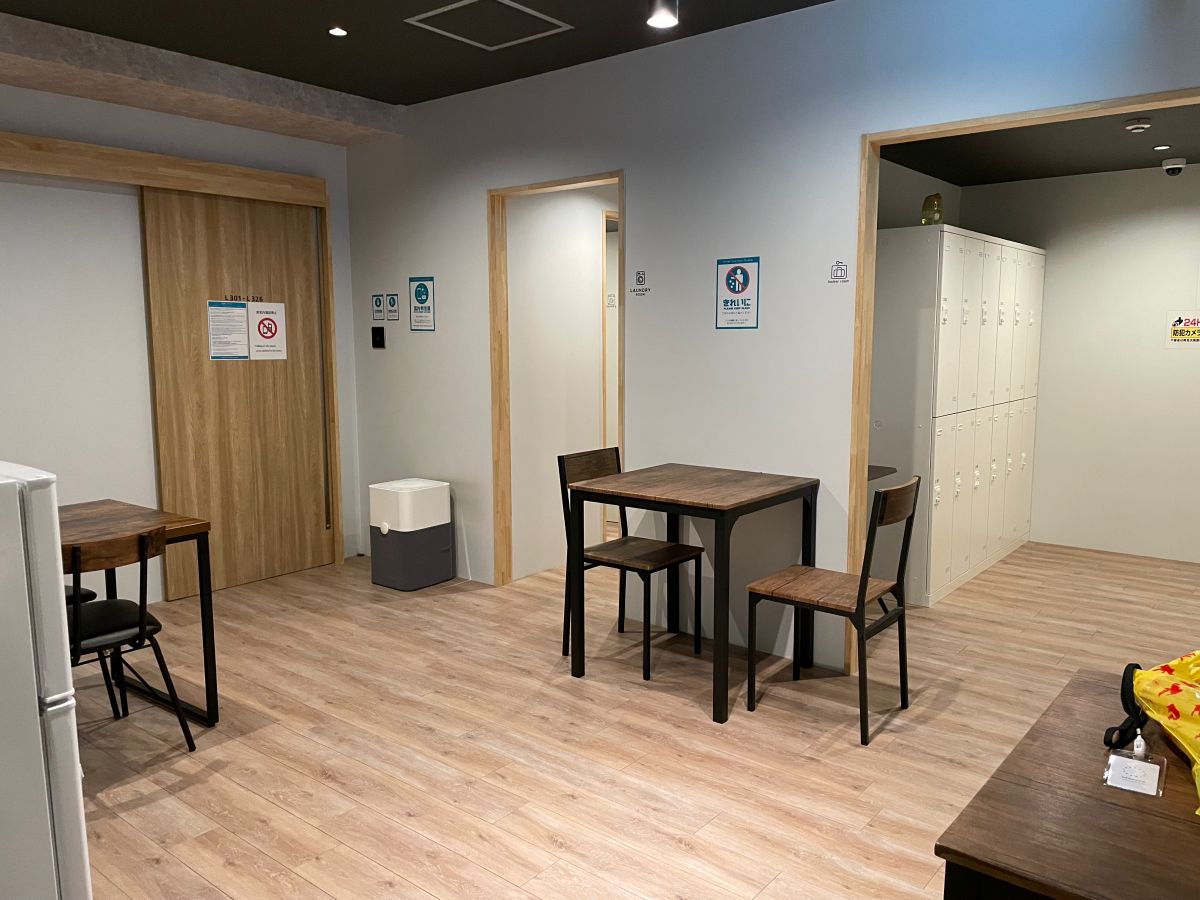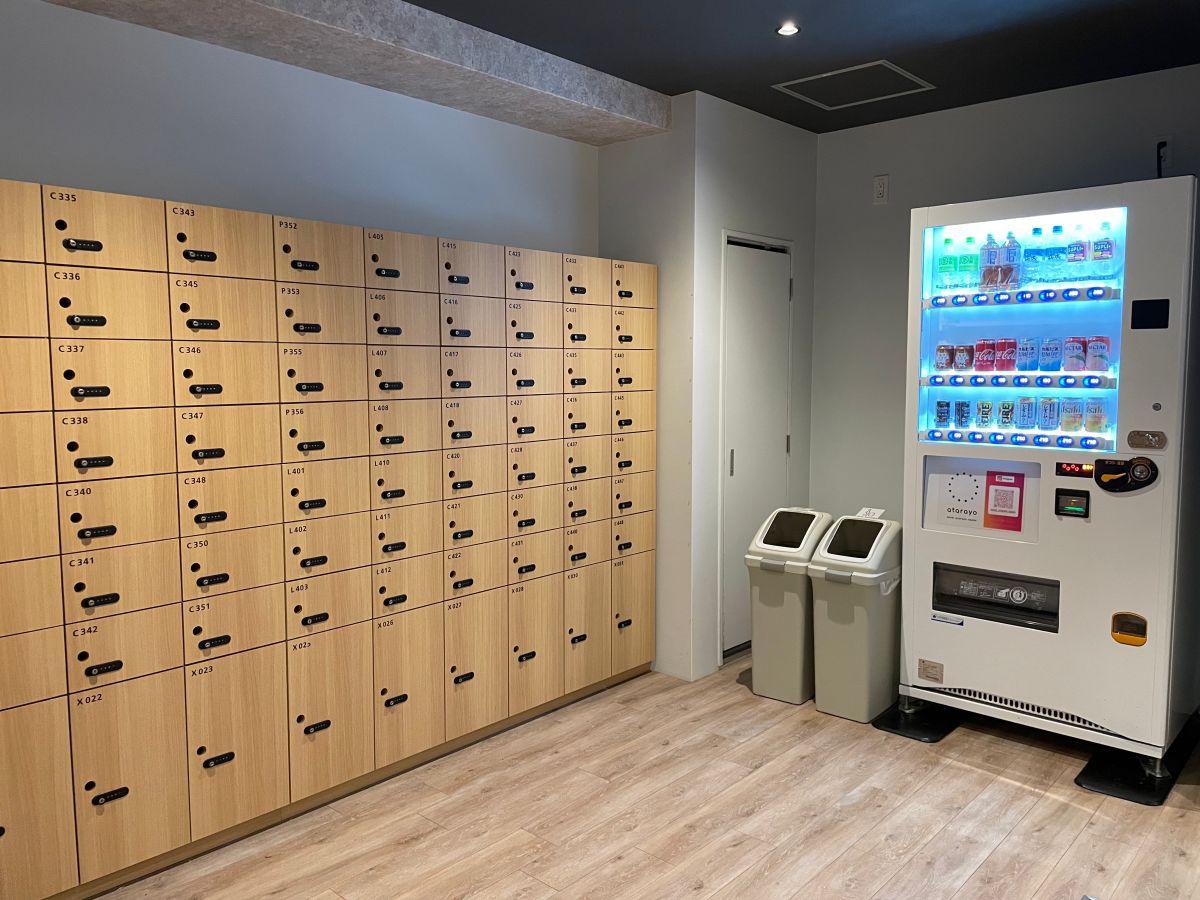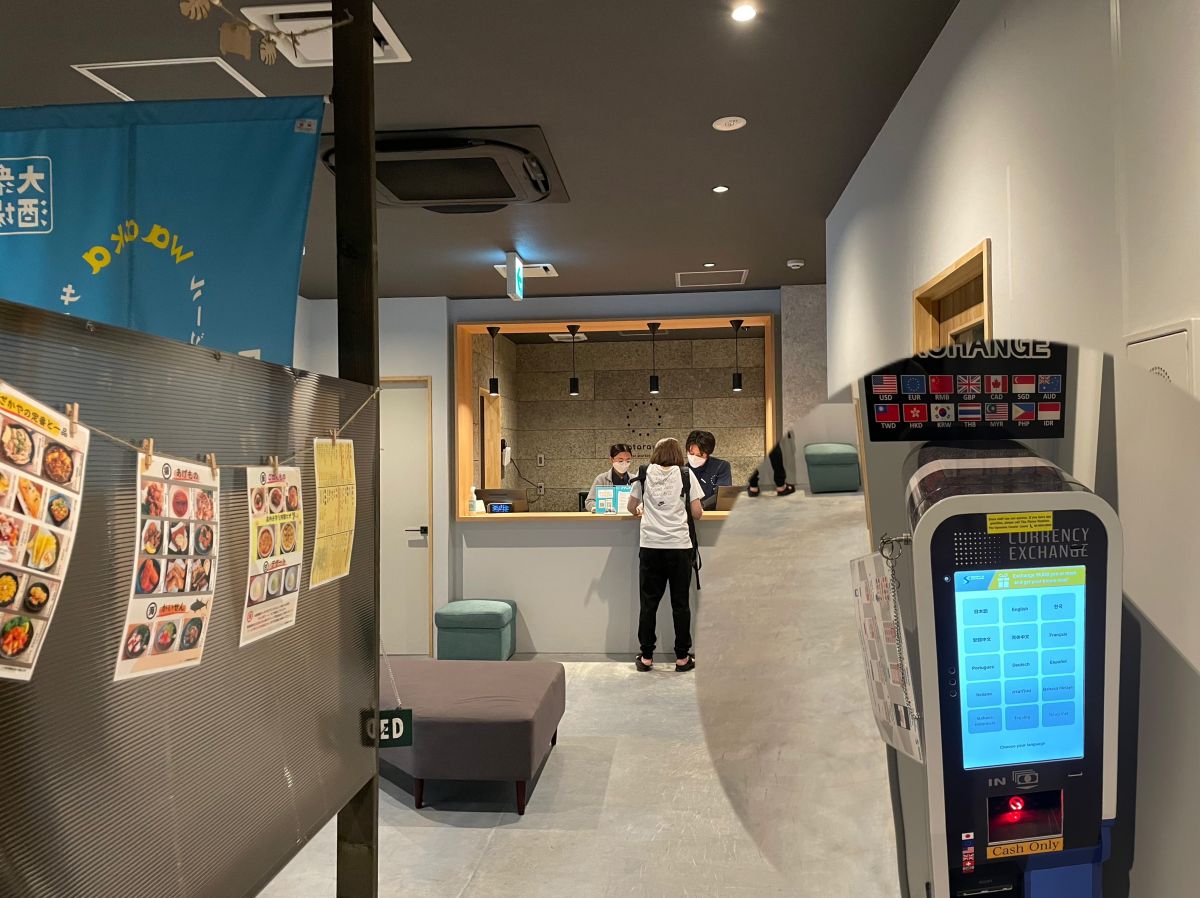 櫃檯在一樓,有簡單的小沙發可以休憩。也有廁所、吸菸室,另外交誼廳也在一樓。很棒的是,隔壁有居酒屋。不用出旅館就可以買東西吃,也太幸福了吧。門口附近有外幣換日幣的機器,24小時可以使用。但匯率就沒那麼好,適合緊急需要用錢的旅客兌換。