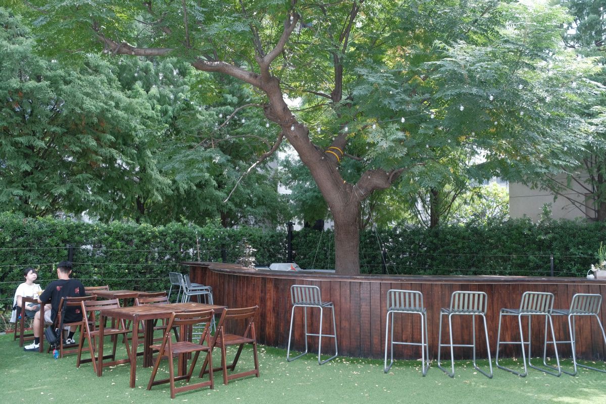 另一區座位區,適合單人座位。綠意盎然,真的有種在戶外野餐的感覺。店家也很會利用空間,樹枝上綁燈,晚上點燈後一定很美。